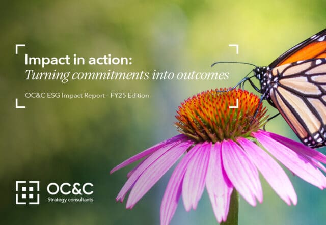 Wir bei OC&C wollen das Richtige tun und sicherstellen, dass wir als Unternehmen eine positive Auswirkung haben. Wir waren schon immer stolz darauf, für unsere Kunden großartige Ergebnisse zu erzielen und dabei einen verantwortungsvollen Beitrag für die Welt um uns herum zu leisten. Gleichzeitig arbeiten wir hart daran, noch besser zu werden. Wir kennen die Herausforderungen, vor denen die Welt steht, und glauben, dass die Unternehmenswelt (und Firmen wie unsere) eine positive Kraft sein können.